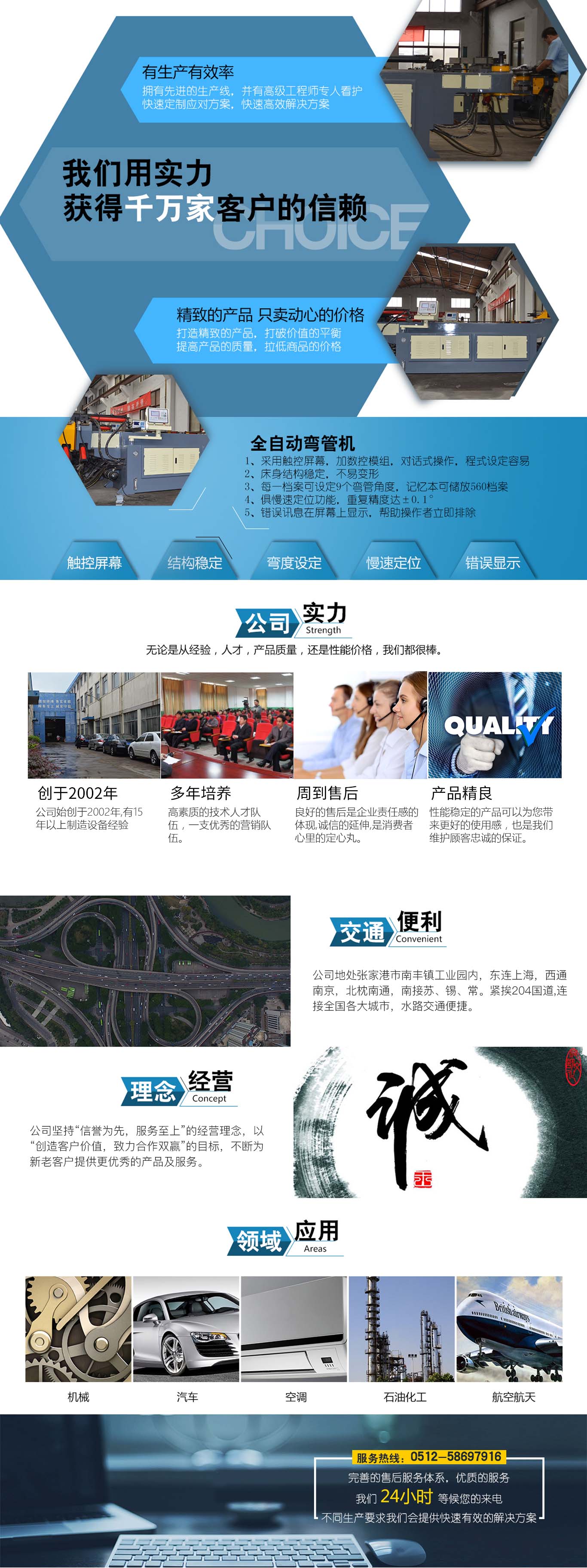 張家港市雙和機(jī)械制造有限公司始建于2001年,占地面積12000平方米,南鄰蘇州、無(wú)錫、上海,東鄰常州、南京,交通便利,位長(zhǎng)三角中間地段,風(fēng)景優(yōu)美的張家港。 雙和公司至創(chuàng)立開始,引進(jìn)了國(guó)外的設(shè)計(jì)制造理念,組建了企業(yè)生產(chǎn)管理優(yōu)秀團(tuán)隊(duì),致力于管材加工機(jī)械研發(fā)、設(shè)計(jì)、制造。創(chuàng)新的設(shè)計(jì)理念,嚴(yán)格的質(zhì)量把關(guān),專業(yè)的售后服務(wù),不斷提升了我在整個(gè)行業(yè)的影響力。 雙和公司生產(chǎn)的系列產(chǎn)品分為彎管機(jī)、切管機(jī)、縮管機(jī)、磨齒機(jī)、伺服彎管機(jī)、數(shù)控彎管機(jī)、液壓彎管機(jī)、自動(dòng)切管機(jī)、管端成型機(jī)、倒角機(jī)、大弧滾圓機(jī)、鋁切機(jī)、壓彎?rùn)C(jī)等管材加工機(jī)械,廣泛用于航天業(yè)、造船業(yè)、汽車制造、鍋爐制造、自行車、摩托車、體育健身器材、管制品家...